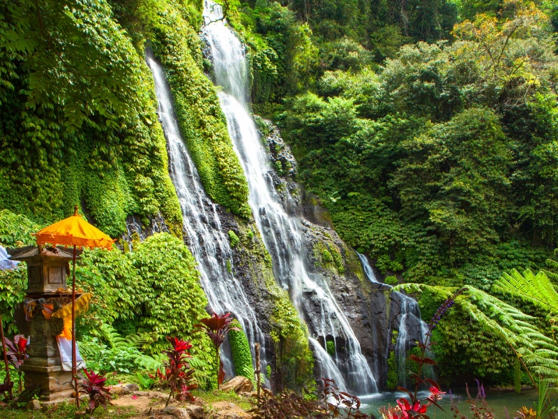 - Vous déjeunerez dans une petite station balnéaire, avant de vous rendre au temple Beji, célèbre pour ses ornements sculptés, dans le village de Sangsit. Vous découvrez ensuite l’ancienne capitale coloniale de Singaraja, avant de terminer la journée à Git-Git, où une majestueuse cascade vous accueille au cœur d’une végétation tropicale luxuriante.